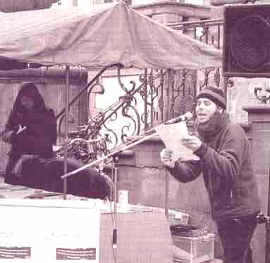 Jan Egge Sedelies aus Hannover liest Gedichte und Texte gegen den Krieg.