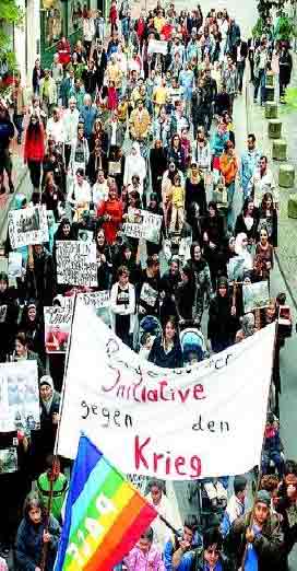 Kundgebung. Auch die Initiative gegen den Krieg fordert dabei den "sofortigen